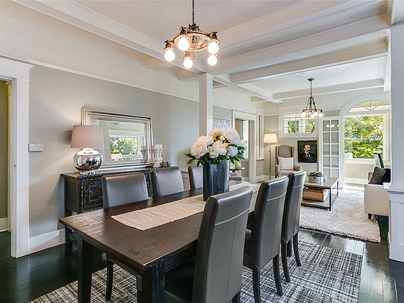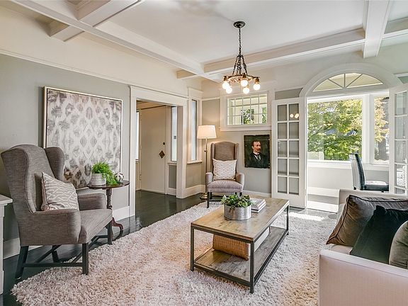 Classic Craftsman rich in period details - box beamed ceilings, vintage fixtures, detailed millwork & built-ins. Lots of light, city views, garden w/ deck, brick patio, front porch & full basement. Spacious rooms w/ designer updates. Charming sun room, finished detached garage + plenty of street parking. Amazing location! Steps from Pratt park, short stroll to Pioneer Square, stadiums, bus lines & light rail. Quick access to I-5 & I-90. Quiet w/ natural privacy provided by old Japanese Maples