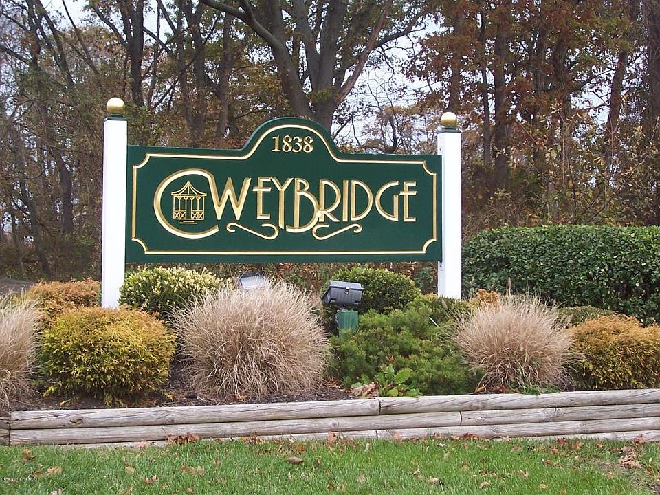 The Jersey Shore awaits you! Enjoy the benefits of living in the highly desirable Weybridge Commuity that boasts a Belmar mailing address. This freshly painted 2nd floor Franklin Model features an open floor plan with a floor to ceiling brick fireplace that will keep you cozy warm on those chilly shore evenings.Super well kept eat in kitchen with oak cabinetry, ceramic tile and parquet hardwood floors.The formal living room is warm and welcoming and tastefully enhanced with a full wall mirror.The spacious bedroom includes a walk in closet with organizer shelves. A fully screened balcony offers views of the green space and gazebo. Newer gas heater and central a/c unit, newer thermopane windows. designated basement storage and reserved parking space. Clubhouse, swimming pool & tennis too!