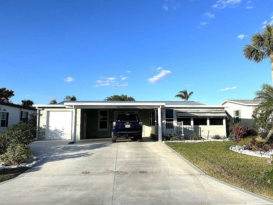 2BR 2BA 1196 sq ft Unfurnished, laminate floors and ceramic tiles. Newer appliances widowed and AC in the Florida room. Double covered driveway, new metal roof, new hot water heater, new water softener, new AC. This home is immaculately kept and is priced to sell. SB3883