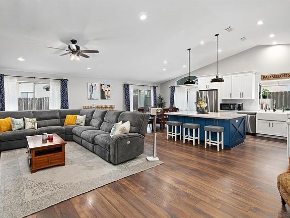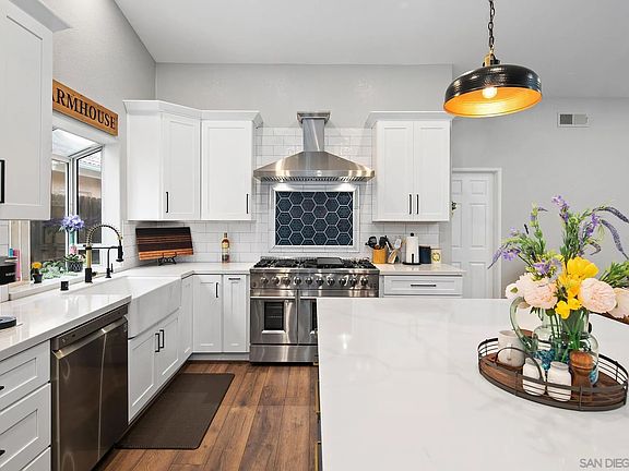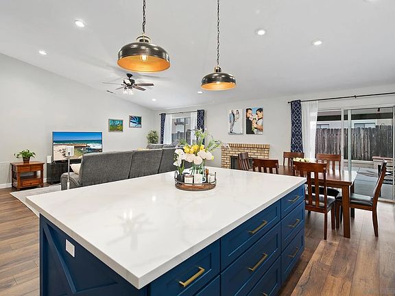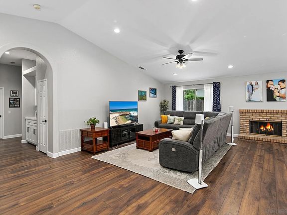 Single story home located in a quiet cul de sac neighborhood. Owned solar! Living area is a great room w/beautifully remodeled kitchen featuring shaker style cabinetry, large island & 8 burner gas stove w/2 ovens & stylish, stainless steel vent. Quartz countertops. Gas fireplace, recessed lighting & luxury vinyl plank flooring. The laundry room doubles as utility room w/extra storage cabinets. New aluminum patio cover. Garage has mini split heat & AC for comfort year round. NO HOA. Freeway close without noise.