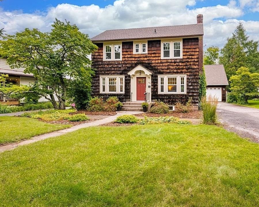 Step inside this timeless Hunters Park traditional and prepare to be impressed! With 4 bedrooms and 3 baths, this classic home blends warmth, character, and thoughtful updates throughout. The inviting main floor offers a spacious living room with a stately fireplace, crown moulding, and oak hardwood floors. The open kitchen and dining area feature a stylish mix of wood and painted cabinetry, quartz countertops, a breakfast bar, stainless steel appliances including a gas stove, subway tile backsplash, and updated lighting. A cozy rec room with a half bath and a tiled mudroom lead directly to the back brick patio and fire pit—perfect for entertaining. Upstairs, you’ll find 4 bright bedrooms, including a sunny primary suite with a wall of windows, double closets, laundry, and a private tiled bath with a deep soaking tub, and an additional updated full bath. Outside, the property offers even more: a landscaped yard, fenced garden area, ample parking and a 2-car garage with a walk-up attic providing a 21x12 storage space plus a 220 outlet for an electric vehicle. Additional updates include all new windows and a new custom 8x16 shed! Situated within walking distance to Tischer Creek trails and waterfalls, and Mt. Royal amenities, this classic beauty won’t last long—schedule your showing today!