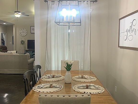 Our home sits on 1.06 acres in Carlyss, LA. It’s 3116sq ft living, 4610 total. There are two outside storage rooms attached. One includes a bathroom. The living room and outdoor patio both include a wood burning fireplace. There’s also a separate dining room, laundry room & bonus room. There are 3 central units. Two have been replaced (2021 & Dec 2023). The roof, vinyl, & gutters were replaced in 2021. Contact me with any questions or to set up a time to view.