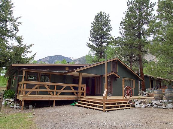 FANTASTIC 5 BEDROOM HOME WITH 2 FULL BATHS ON 1+ ACRES OF LAND. ABSOLUTELY GORGEOUS ..... SITUATED IN AN ASPEN GROVE THAT OPENS TO A HUGE MEADOW RIGHT NEXT TO THE SAN ISABEL NATIONAL FOREST. FEELS LIKE YOU HAVE ACRES & ACRES OF LAND!! COMFORTABLY NESTLED BETWEEN THE CHALK CLIFFS WITH THE CHALK CREEK RIGHT OUT YOUR BACK DOOR.... IT'S A VERY PEACEFUL & PICTURESQUE SETTING! ENJOY DEER, LONG HORN SHEEP & WILDLIFE THAT ROAM THE PROPERTY. CLOSE TO EVERYTHING...MONARCH SKI RESORT, THE ARKANSAS RIVER, SNOWMOBILE & ATV, FISHING GALORE, ST. ELMO GHOST TOWN,HISTORIC LEADVILLE, SHOPPING, ANTIQUES, HIKING, THE COLORADO TRAIL, AGNES VAIL FALLS, MOUNT PRINCETON HOT SPRINGS...YOU NAME IT & IT'S IN THE AREA. 15 MINUTES TO SALIDA, 10 MINUTES TO BUENA VISTA. THE HOME ITSELF IS FULLY FURNISHED WITH 3 QUEEN BEDS, 1 KING, 1 FULL AND 2 TWINS. HUGE COUNTRY KITCHEN WITH LOADS OF CABINET SPACE, PANTRY, BREAKFAST BAR, SMOOTHTOP STOVE WITH MICROWAVE. SPACIOUS ROOM SIZES IN THIS COMFORTABLE HOME. SITTING ROOM INCLUDES FLOOR TO CEILING WINDOWS TO ENJOY THE BREATH-TAKING VIEWS. OUTSIDE YOU'LL FIND A WRAP AROUND DECK, BBQ, HOT TUB, ENCLOSED YARD AREA & LOTS OF PEACE & QUIET. AVAILABLE NOVEMBER 2025 THRU MAY OF 2026. CALL FOR FURTHER DETAILS.