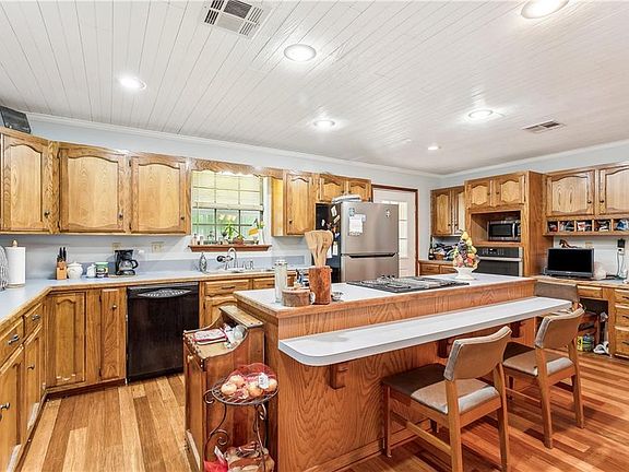 What a charming and spacious home! Situated on nearly an acre of land, it offers plenty of room to spread out and enjoy the outdoors. The large living room with its cathedral ceiling and wood-burning fireplace sounds like the perfect place to unwind and relax, especially with the view of the oversized fenced-in back patio through the French doors. The kitchen sounds like a dream, with its cooktop island, convenient computer desk, and large walk-in pantry complete with a utility sink and second refrigerator. The adjacent sunroom/screened-in patio adds even more space for entertaining or simply enjoying the outdoors right off the kitchen. With 4 bedrooms and 2 full baths, there's plenty of room for family and guests. The primary bedroom sounds especially luxurious with its octagon tray ceiling, wood floors, ensuite bathroom featuring a soaking garden tub, separate shower, and spacious walk-in closet. The detached single-car garage with storage space and workshop offers both convenience and functionality, providing ample room for a vehicle and projects. Overall, this home seems like a beautiful blend of comfort, functionality for both relaxation and entertainment.