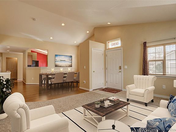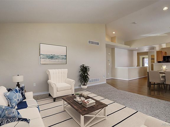 Highly sought after maintenance free ranch floor plan in the Tower Ridge II community. This lovely 3 bed, 3 bath townhome that lives like a single family home and has everything you need on one level. Featuring vaulted ceilings, lots of natural light, wood grain laminate floors on the main level, a large finished basement, 3 private patios and a 2 car attached garage. Enjoy an open concept floor plan accented by abundant natural light, souring vaulted ceilings and skylights. The front door opens to a spacious family room with an open flow to the kitchen The kitchen offers an eat in nook area, pantry and a cozy private patio. The large master suite boasts vaulted ceilings, another private patio, a spacious en suite bathroom, linen closet and walk-in closet. Down the hall on the main level is a guest bedroom with vaulted ceilings, a private fenced patio and a 3/4 guest bath. Convenient main level laundry room (washer and dryer included). The finished basement is perfect for entertaining and includes a large family room, wet bar with included refrigerator, spacious guest bedroom, 3/4 bathroom and plenty of storage. Convenient guest parking just outside the front door, minutes to shopping, dining and parks. Commuting is a breeze with easy access to DIA, E-470 and public transportation. This home also includes a radon mitigation system. Furnace recently serviced and cleaned! In 2019, the HOA installed new roofs, new gutters and painted the exterior. This is the one!! *PLEASE SEE 3D VIRTUAL TOUR UPLOADED IN PHOTOS/VIDEOS