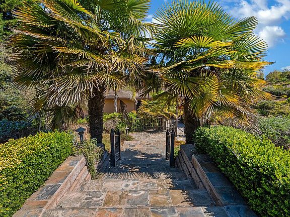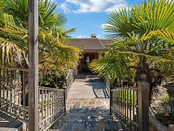 Welcome home to Country Meadows. Enjoy valley & mountain views as you enter through a secure gate. Appreciate grand entrances to the front/rear including an elaborate landscape, masterful stone work, river rock beds & several large lawns. The long driveway opens to a grand parking area, or continue to one of 4 garage spaces. Enjoy play areas, high quality covered patio structure, & a newer shed on concrete slab w/permitted electrical. All of this serves as an excellent place for relaxation and entertaining of guests over valley views. The chefs kitchen and baths have been extensively remodeled with high quality finishes including Dacor appliances that show like new, warming drawer, built in fridge & freezer, designer cabinetry, skylights, coffered ceiling, beams & more. The large formal dining & office/den could serve as additional bedrooms. The living room offers a cabin like feel with vaulted ceiling, stone fireplace, wood paneling and views. All bedrooms & walk in closets are generously sized. The primary bath boasts a jetted tub, radiant flooring, & views of a private Zen garden. You'll appreciate the natural light, quality of construction, pride of ownership and the executive style features/benefits throughout. Don't miss the garage shop & an amazing kennel for pets.