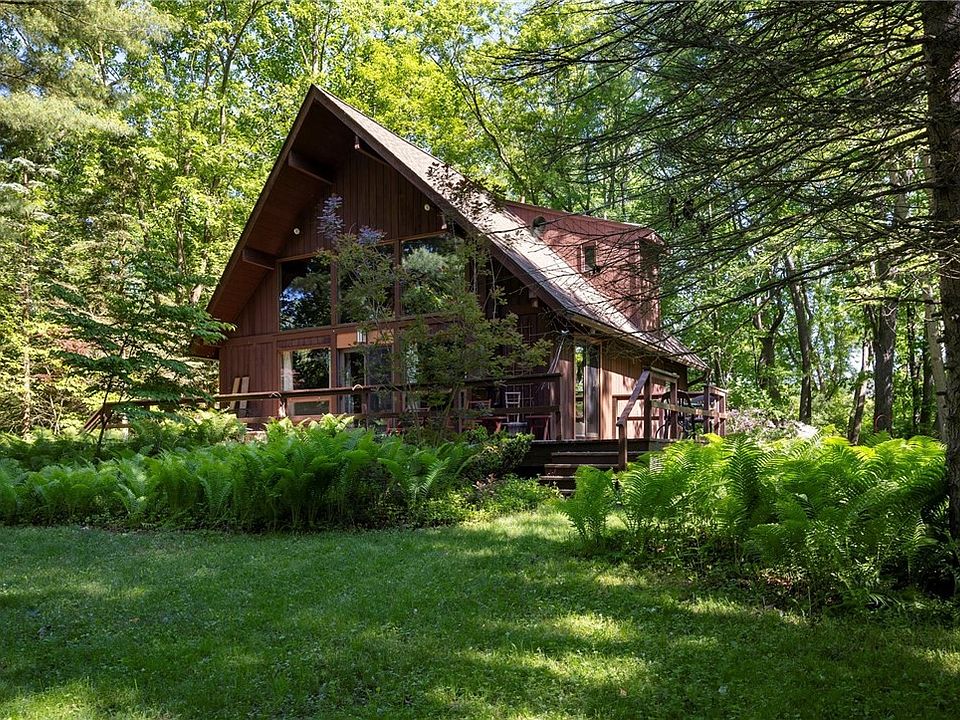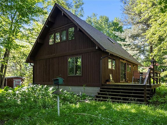 Rustic A Frame nestled in the woods adjacent to Shadow Lake Golf Course, tucked away in the woods, private setting, wraparound deck overlooking woods & wildlife, shed included, Soaring 20 foot cathedral ceilings with knotty pine interior, 1st floor primary suite with full bath, tub, updated kitchen with granite countertops, newer cabinetry, all appliances included, upstairs features an open large loft / 3rd bedroom with closet or cool office, another bedroom with cathedral ceiling and wall of windows out back, second full bath has tub, private setting in woods , half acre lot, Estate Sale Offers due Monday June 10th at 12 noon.