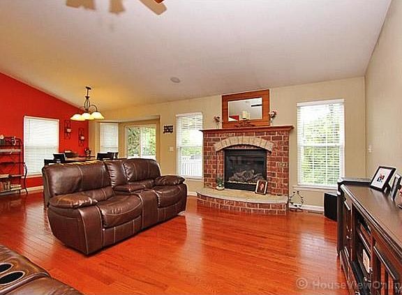 This beautiful 5 year old 3 bedroom 2 bath Ranch home is loaded with fantastic options, over sized 3 car garage, brick and stone accents, carriage garage doors, covered composite deck, walk-out basement with windows, patio, hardwood floors, huge stone and brick gas fireplace, breakfast bar, upgraded cabinets, surround sound, stainless appliances, built-in microwave, sliding door bay in kitchen, vaulted ceilings, upgraded doors, open staircase with wrought iron spindles, luxury master bath with separate garden tub and shower, double bowl sink in master bath, water softener and full rough in basement. If you are looking for a home that backs up to woods for privacy and looks-feels like brand new then you wont be disappointed in this home.