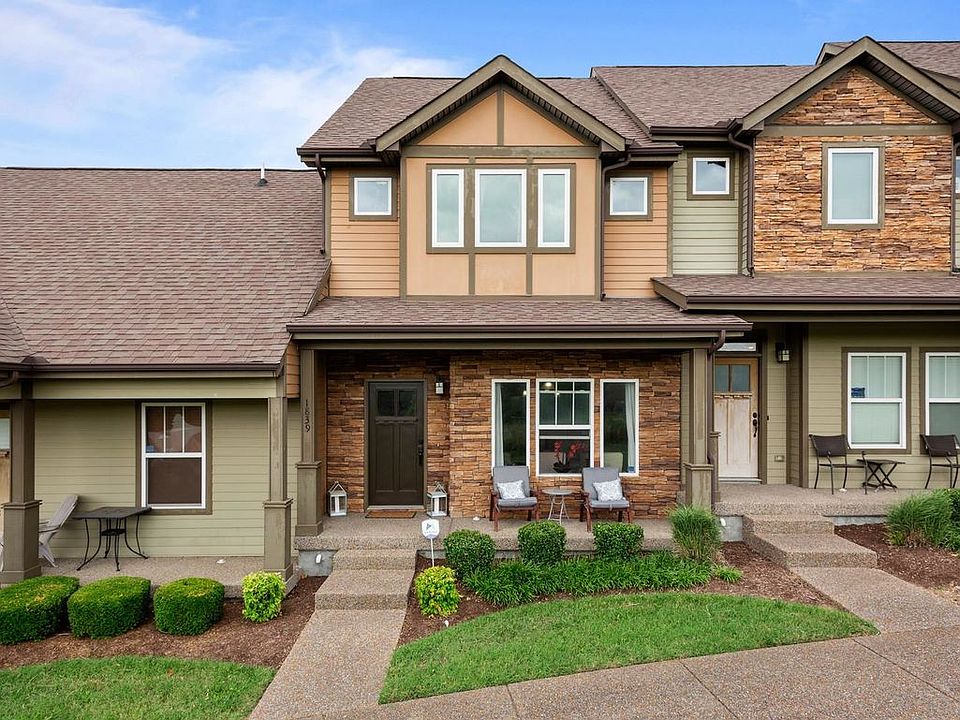 Incredible craftsman style townhome featuring stacked stone, maple cabinets in the kitchen, stainless steel appliances, stained concrete floors on the main level, covered front porch, private back patio, and a finished 3rd story flex/bonus room. Very convenient to i-24. OPEN HOUSE 7/14/19 MUST SEE!