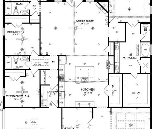 Dogwood plan. The long front porch is a perfect primer for all of the beauty housed in these four walls. The entryway is flanked with a study on one side and a formal dining on the other, and then you are lead directly into the large kitchen. An abundance of storage, both in cabinets and in the pantry, coupled with the large eat in island make this space a chef’s dream. The kitchen flows seamlessly into the large great room with a corner fireplace and wall of windows looking out onto the covered porch on the rear of the home. Off to one side of the main living area you’ll find the master suite that leaves nothing to be desired: tray ceilings, soaking bathtub, roomy shower, and one of the largest walk-in closets we have ever laid eyes on. The opposite side of the main living area is home to three additional bedrooms and two full bathrooms, plus a drop zone and laundry room that lead into the garage. What more could you need in a home?!
