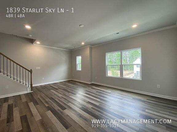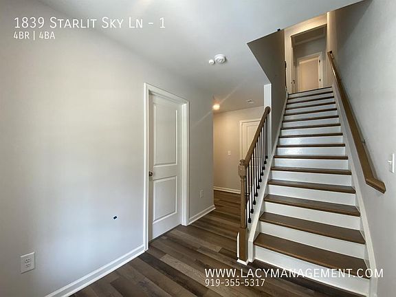 This 2179 square foot townhome home has 4 bedrooms and 3.5 bathrooms. This home is located at 1839 Starlit Sky Ln #1, Cary, NC 27519.