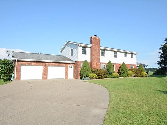 Truly a one of a kind property, this sprawling 10 acre parcel includes a meticulous 3000 sq ft 4 bedroom home & a 2640 sq ft heated & insulated cinder block pass-thru garage with three 12 ft doors. Quality updates to the home include Anderson thermopane windows, oak cabinetry & doors, corian counters, stone & brick fireplaces with wood/coal inserts, dramatic beamed ceilings, hardwood floors, plaster walls, & surround sound. Also features 2 master bedrooms, updated bathrooms, newer a/c, 400 amp service, & 1617 sq ft of unfinished basement. Across the upper driveway of 6" exposed aggregate sits the car enthusiast's dream garage with workshop, in-ground twin post lift for auto/light truck, clearance for large RVs, 200 amp service, 1/2 bath, 2 furnaces (oil & propane), & RV dump. Property has excellent storm water management, buried conduit from house to road, and is just 4 miles to Interstate 79. Horses and cattle are permitted and the landscape offers year round enjoyment for all!