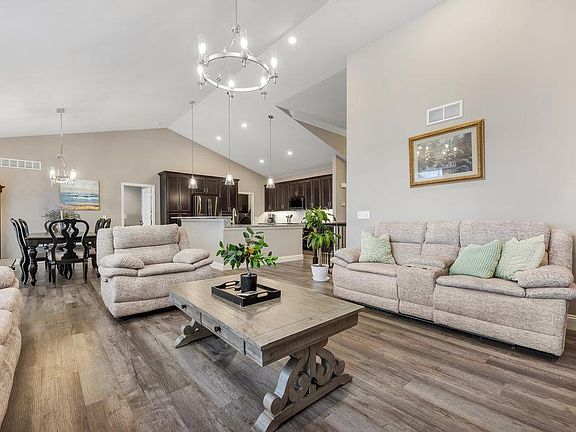 This 2 YEAR OLD Ranch Home boasts 4 bedrooms, 3 bathrooms, & every upgrade imaginable! From the moment you enter, you'll be greeted by an abundance of natural light that fills the open-concept living spaces! The heart of the home is the kitchen-featuring S/S appliances, custom cabinetry, space saver microwave, a large island & luxurious countertops! As you walk into the living room, you can't help but notice the beautiful built in bookshelves & stone, gas fireplace. Enjoy this split bedroom floor plan- the master suite features a stunning coffered ceiling, double bowl vanity and walk in shower! Don't stop there, the finished basement includes a cozy family area, wet bar, 4th bedroom & full bath! Outside, you'll discover a beautifully landscaped yard, oversized deck w steps & equipped w/ lawn irrigation! Located in one of the most desirable neighborhoods in town, this home offers both luxury and convenience, with easy access to shopping, dining, entertainment, and top-rated schools!