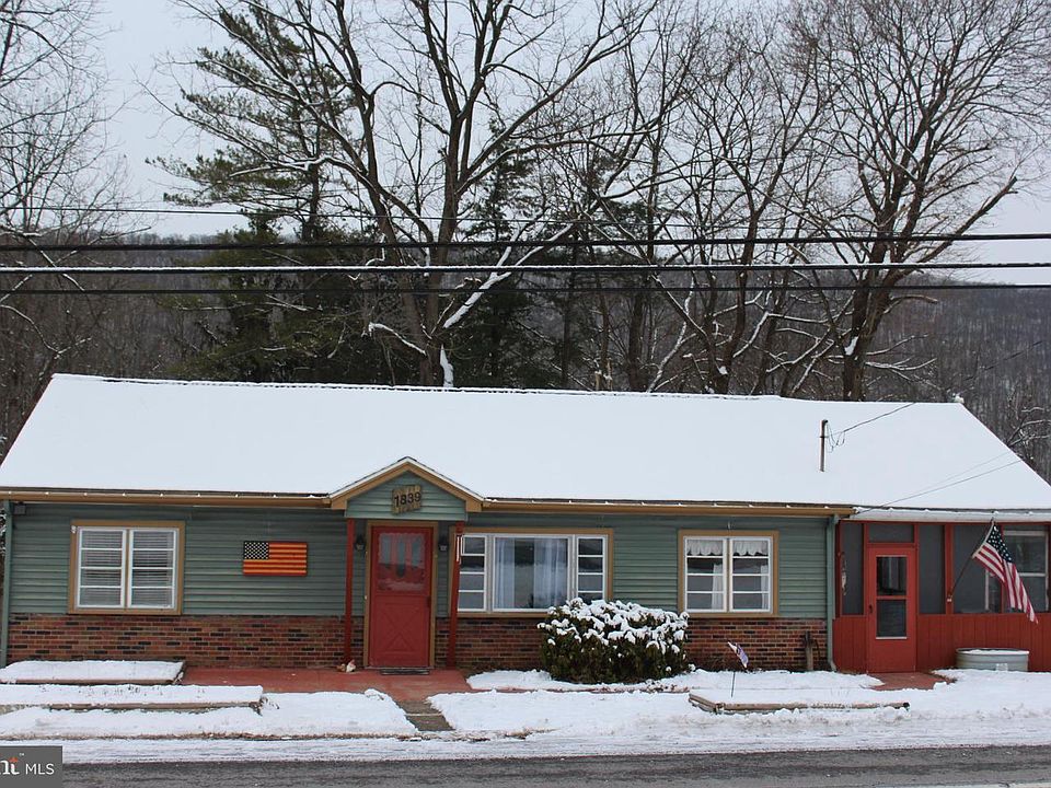 Charming ranch home set on a spacious .81-acre lot with beautiful mountain views and the convenience of public water and sewer. The partially fenced yard offers space to relax, garden, or entertain. Inside, the living room and dining room feature hardwood flooring, complemented by knotty pine paneling in the dining room that adds warmth and character. The kitchen includes a center island and wood cabinetry, providing both functionality and storage. Enjoy additional living space in the large three-season sun porch, perfect for taking in the views throughout much of the year. The home offers a full bath and three bedrooms, one of which is currently being used as a walk-in pantry and could easily be converted back to a bedroom or home office. Washer and dryer hookup in basement also. A full basement provides ample storage and future expansion potential. This property combines peaceful surroundings with everyday convenience—an excellent opportunity to make it your own.