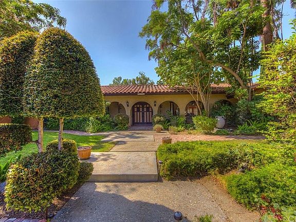 Fantastic Opportunity to own this almost half an acre lot with peaceful and serene views of and direct access to the Yorba Linda lake bed where you can enjoy walking, biking, horse back riding.This Spanish style,completely single level home has porcelain tile floors,real brick and views that span the back of the home.Sitting on a private cul de sac street and offering new sprinkler system,new garage doors,wood beamed ceilings with arched doorways, Tiffany lamps and open floor plan with kitchen overlooking family room.Master suite has walk in closet and vaulted ceilings and sits privately on one side of this ranch style home,while the other three bedrooms,two baths and laundry sit on the opposite side of the home with the kitchen as the heart of the home. Kitchen has built in sub zero refrigerator,lots of cabinet space and built in desk. Custom living and dining rooms, and master bedroom all open to the back with French doors, and family room opens to enclosed patio. The wonderful home needs your personal touches and the pool was in the process of being remodeled, but the totally flat lot has horse stalls and a tack room,if you have horses, and plenty of land to build your dream yard if you don't!Close to the best schools,Paxton Arena and shopping!