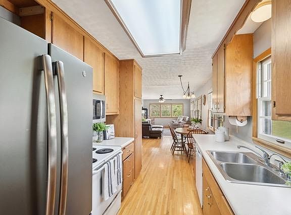 Lovely Rambler sitting on a spacious Half acre lot located in Minnetonka Schools, less than 250 yards from the new Minnetonka School District Vanage and Momentum Building. This home features 3 garage stalls. Main level hard wood floors, an extra large storage shed, Heated Bathroom floors and Lots of natural light from ample windows creating a sunroom effect in the Living room.