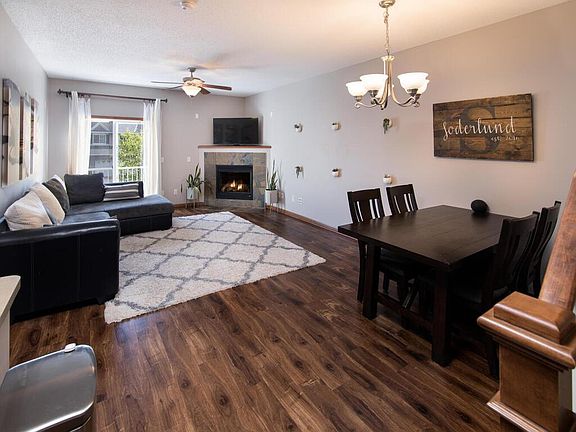 Welcome to this 3 bedroom townhome in a GREAT location and neighborhood! Walk in to a spacious entry way with large storage closet and head upstairs to the open living area! Kitchen features upgraded stainless steel appliances, under sink water filtration system, and maple cabinetry. Living room offers plenty of space as well as a corner electric fireplace and sliding door to a southeast facing deck! The main level also has a bedroom, laundry and 3/4 bath. Upstairs offers 2 more bedrooms, including a large owner's suite complete with walk-in closet and a walk-through full bath with separate soaker tub! All of this with a 2 car garage complete with storage shelving, 2018 new mechanicals and new roof in 2021. Prairie Lake Lodges has so much to offer including multiple parks, walking paths, baseball and soccer fields! Convenient access to I35, shopping and dining!