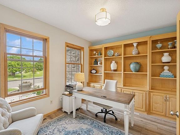 Welcome to this beautifully maintained two-story home in the Trout Brook Farms neighborhood. Situated on a nearly half-acre corner lot and quiet cul-de-sac, this 5-bedroom, 5-bathroom home offers flexible living space, thoughtful updates, and a layout designed for everyday comfort. Step into the two-story foyer filled with natural light and enjoy an open main level that flows from the family room to the kitchen and dining areas. The kitchen features granite countertops, a beverage station, and plenty of workspace—ideal for meal prep or hosting. You’ll find options for both formal dining and casual gatherings, plus easy access to the large deck and backyard. The main-level office includes built-in shelving and bright windows, offering a comfortable setup for work or study. Upstairs, four generously sized bedrooms each include walk-in closets, and all have direct bathroom access. The primary suite offers a private spa-inspired bath with a tiled walk-in shower, double sinks, and a spacious closet. The walkout lower level adds even more room with a large rec space, fifth bedroom, full bath, and a versatile bonus room—perfect for hobbies, a home gym, or storage. The backyard is landscaped and ready for summer fun, whether you’re grilling on the deck or gathering around a fire pit. Additional highlights include a 3-car garage, updated mechanicals (furnace & A/C), newer flooring and paint, and remodeled kitchen and bathrooms. The school bus stop is conveniently located right at the corner—an added bonus for busy mornings. Enjoy nearby walking trails, parks, sport courts, and the community’s Red Barn gathering space. A well-rounded home in a welcoming neighborhood—ready to make your own!