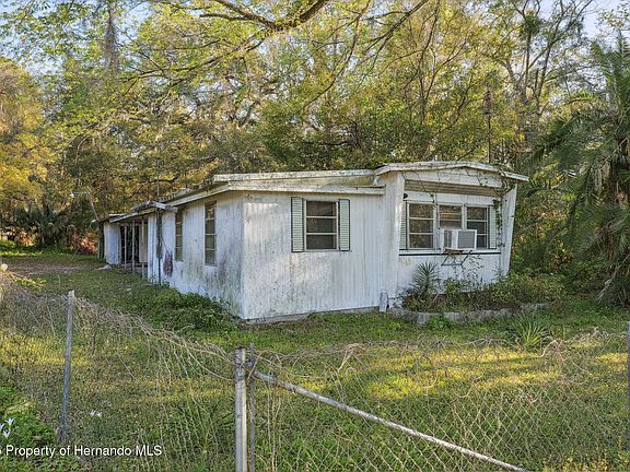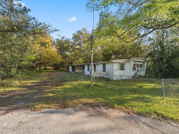 Nestled on a generous half-acre lot adorned with mature landscaping and partially wooded areas, this mobile home offers a serene retreat with abundant potential. The property features two attached covered carports accommodating up to three vehicles, complemented by a front covered porch, and plenty of space. While the home requires some tender loving care and presents a fixer-upper opportunity, the expansive land provides a canvas for your vision, whether it's creating lush gardens, outdoor living spaces, or additional structures. You could also tear it down and use this amazing lot to build your dream home. Just 8 miles away lies the Withlacoochee State Forest, spanning over 157,000 acres and offering a myriad of recreational activities including hiking, biking, and horseback riding. For history enthusiasts, the Chinsegut Hill Manor House, a historic site dating back to the 1850s, is situated approximately 12 miles from the property, providing a glimpse into Florida's rich past. Additionally, the Good Neighbor Trail, a 10.7-mile multi-use recreational trail connecting Brooksville to the Withlacoochee State Trail, is located about 6 miles away, perfect for walking, jogging, or cycling amidst scenic surroundings. Embrace the opportunity to transform this property into your dream haven, surrounded by nature and close to local attractions.
