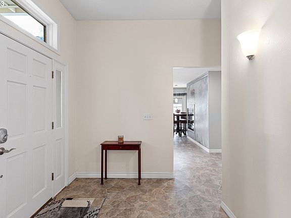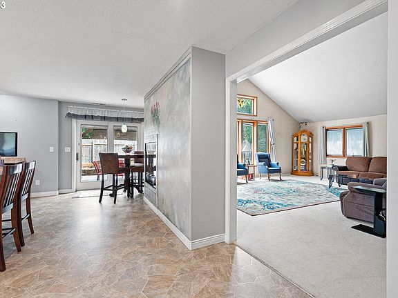 Fabulous single-level Thurston home with lovely kitchen featuring white cabinets, granite countertops, island with eating bar, walk-in pantry, flat screen tv, eating area and double sided fireplace that connects the kitchen and living room. The spacious living room is adorned with vaulted ceilings and large picture windows. Formal dining room, perfect for hosting gatherings and special occasions. The primary suite is a true retreat with vaulted ceilings, door to patio for easy access to hot tub, double vanities, soaking tub, walk-in shower, and an expansive walk-in closet that accommodates all your storage needs. With three additional bedrooms there's room for everyone. The second bath is thoughtfully designed with stunning copper countertop, adding a touch of elegance. Step outside onto the large covered patio, complete with ceiling fans and lights, creating an ideal space for outdoor enjoyment regardless of the weather. Enjoy the soothing sounds of the water feature or relax and unwind in the hot tub in the beautifully landscaped fenced yard. Two car garage, extra deep on one side. Additionally home features a 1 year old heat pump & dishwasher. Home open Sat 8/26 10am-12pm.