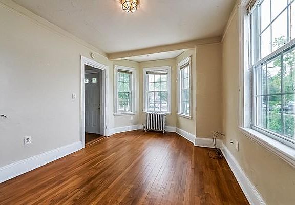 Truly Great Value - three bedroom, one and one half bath attached townhouse with two car parking in the driveway! Wood floors, living and dining rooms plus an eat-in-kitchen, with laundry and storage in the basement and a huge shared yard. Owners are open to renting to tenants with a dog or a cat. Easy access to the Mass Pike, bus lines, stores, and restaurants. This place isn't fancy but it's tough to find a better deal