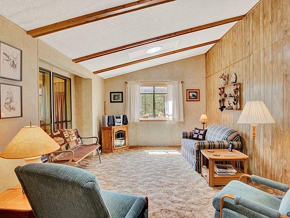 Affordable Colorado home on 5 plus acres in the woods! It is rare these days to find a mountain home for this price on acreage in desirable Custer County. This home has 2 bedrooms and one full bath, with a nice open floor plan including a large kitchen and cozy living area. A full bathroom includes the laundry area and plenty of counter space. Two nice-sized bedrooms afford comfortable sleeping arrangements. A large Trex deck opens to the forest. The oversized garage beneath the home has ample space for two cars, all your motorized toys, and a work shop. An addition off the great room includes a pantry, and stairs to the lower-level garage area. A newer metal roof has been installed. The land is heavily treed with tall Ponderosa pines, and views of the Wet Mountains. Technically a manufactured home, the cabin has always been permanently anchored on a standard home foundation. This wonderful retreat could be occupied either full or part time, and the furniture is included!