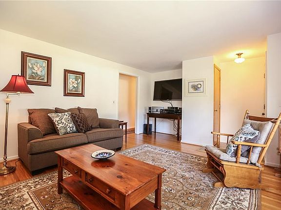 Easy Living is the best way to describe this picture perfect Ranch! Located on a tranquil neighborhood street. Do not let the Sq. Footage fool you - this home has GREAT living space !! Beautiful Hardwood Flooring, Updated Kitchen with Corian counters, ample cabinet space and Vinyl-tile grouted Flooring. The Dining Room looks out over the private yard with Pocket Doors to the kitchen! Spacious bedrooms w/great closet space, updated Main Bathroom. The lower level has a large finished area, half bathroom, work shop area and plenty of space for storage! You will LOVE the sun porch overlooking the fully fenced yard which features a patio, beautiful deck and backs to a mature wooded area. Complete Tear-off Roof 2006, freshly sealed driveway.