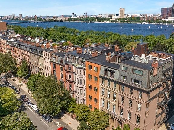 This Riverside Beacon Street Penthouse in Back Bay was gutted down to the studs & completely rebuilt by Sea-Dar Construction in 2008. The penthouse spans over 3 full, spacious floor-through floors, and features exquisite craftsmanship & elegance throughout its luxurious sun-filled rooms. Quarter-sawn white oak floors & natural stone finishes compliment this PH, so does the direct elevator access from the lobby & heated 2 car garage to the 2 main living floors. The main living level is 26’ wide with 10ft ceilings, a living room, 2 fireplaces, a dining room, chef's kitchen & family room with a balcony overlooking The Charles River. The second level consists of a primary suite w/ river views, a sitting room, fireplace, & marble bath, a second bedroom w/ fireplace & en-suite bath, laundry room, powder room & elevator access. Level three has a wet bar, fireplace, skylights, and 2 roof decks (650sf) w/ amazing city & sunset river viwes.