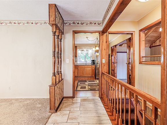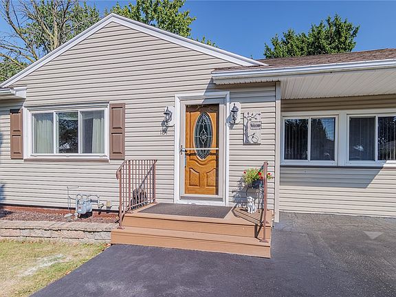Sharp in and out! 1284 sqft Ranch with updated kitchen, new bathroom, cathedral ceiling in the huge family with sliding glass door to the covered deck and a gas fireplace. Large living room is open to the foyer and the open design basement stairway. Versatile design with the 3rd bedroom being used as a dining room. Finished basement offers rec area, small kitchen with a refrigerator and a work area. Fenced yard has a concrete patio and a vinyl storage. Plenty of room for a pool. 6 year old roof and 1 yr on the hot water tank.