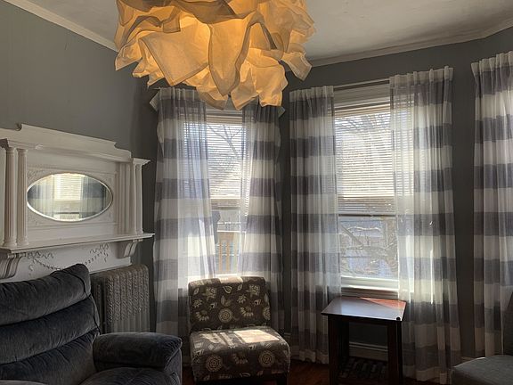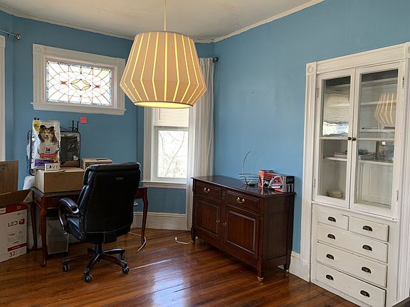 This is a large second and third floor apartment in a multi-family home. Enter through your private entrance to a large foyer. The apartment features a spacious living room with lot's of light, separate dining room with built-in hutch- high ceilings and hardwood floors throughout. The kitchen is updated with granite counters and new appliances. Spacious bedroom and full new modern bath complete the main level. On the third floor - 2 additional bedrooms and a full modern bath. Large private front porch to enjoy.. Laundry in unit. Parking for two cars, one private garage, one driveway space. Conveniently located - 1 block from Moody Street and all that it has to offer. Shops, restaurants and public transportation.