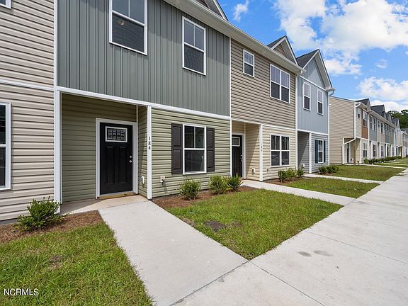 Welcome to 184 Buckhorn Ave, where modern design meets convenience in this brand-new 2-bedroom, 2.5-bath townhouse. This home offers a spacious layout, perfect for comfortable living. The bright and airy kitchen boasts stainless steel appliances, and plenty of cabinet space, all opening to a generous living and dining area. There is a convienent half bath on the first floor. Upstairs, each bedroom comes with its own en-suite bathroom, ensuring ultimate privacy and ease of living. The master suite features a walk-in closet and a luxurious bathroom, creating a perfect retreat. A well placed laundry room completes the upstairs. This home is ready for you to move in and enjoy, with high-quality finishes and energy-efficient details throughout. Located close to local amenities, shopping, dining, and just a short drive to the beach, 184 Buckhorn Ave offers a prime location in the heart of Holly Ridge. Seize the chance to own this beautiful new home in a growing community!