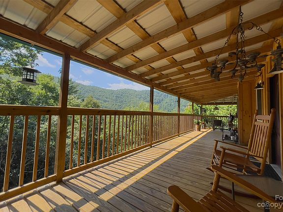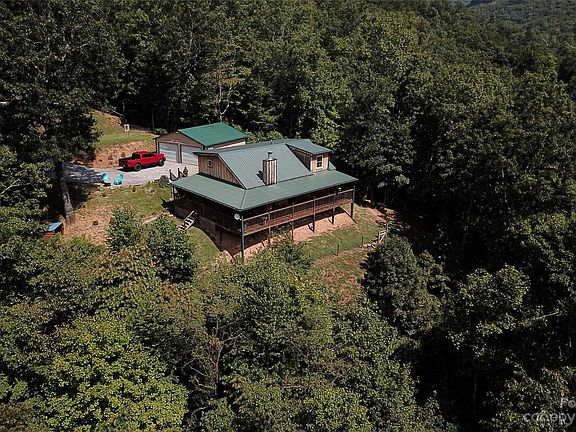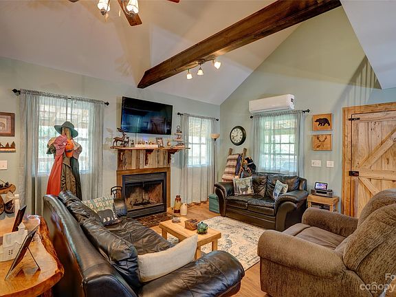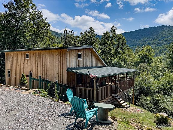 Custom-built & decorated 2 bedroom 2 bath, partially furnished cabin w/an extra lot! Entry features a detached 25X24 2 car garage with steps that lead to a covered wrap-around deck. Great room features an open concept w/vaulted ceiling complimented by a woodburning fireplace. Spacious kitchen boasts granite countertops, copper farmhouse sink, stainless appliances, island with breakfast bar & adjacent dining area. Off the living area is a main level bedroom, laundry/pantry & bathroom featuring a custom vanity and step-in ceramic tile shower. Upstairs features a loft overlooking the living area, currently being used as an extra living space/home office. The adjacent XL primary suite with a walk-in closet & ensuite bath with soaking tub and step-in ceramic tile shower. The exterior grounds contain a firepit area, dog house with fenced area for Fido, garden area, fruit trees & chicken coop! Sensible deed restrictions, Balsam West high-speed internet, privacy, wrap-around porch with views!