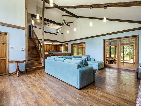 • Liv Dscrp: Fireplace, Ceiling - Cathedral, French Doors, Ceiling Fan(s), Ceiling - Beamed, Flooring - Laminate, Lighting - Pendant