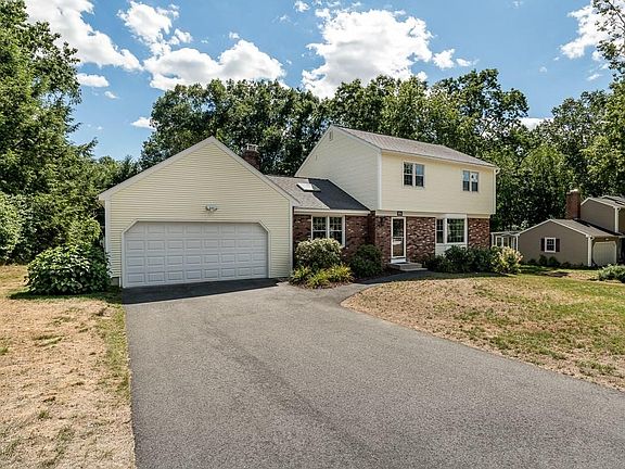SUNNY COLONIAL! Located on a quiet side street this lovely home is painted in neutral colors. Living room with bay window, formal dining room all with newer carpeting. Kitchen with gas stove, refrigerator, dishwasher has an eat-in area with direct access to a deck overlooking the back yard. Family room with cathedral ceilings, hardwood floors, skylights and fireplace. First floor laundry and half bath. Second floor all with newer carpeting; master bedroom with large walk-in closet, picture window with views of the rear yard and updated bath with shower. Two additional bedrooms and updated bathroom. Partially finished basement with two finished rooms a rec room with built-ins and home office. Updated two-zone gas boiler and gas on-demand hot water system. Two car garage and nice sized back yard.