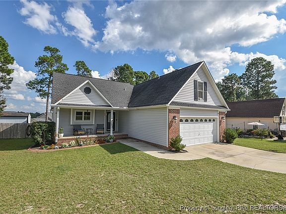 Ranch style with bonus/4th bedroom suite above garage, 3 full bath home in North Ridge Plantation! Secluded master suite on the main level with built-ins in the walk-in closet and updated bathroom featuring double sinks and a tub/shower combo. Bedrooms 3 & 4 with a full bathroom in between. Main living space features a great room with vaulted ceilings and fireplace open to the eating/dining space. The kitchen is perfect for hosting, lots of counter space, soft closing drawers and cabinets, backsplash, bar height counter for entertaining, sink overlooking the covered front porch and SS appliances. Upstairs boasts a 4th bedrooms suite with shower. Enjoy the deck overlooking the privacy fenced backyard. Dishwasher and microwave 1 year old, carpet and firewall replaced in 22', HVAC replaced 2021, doors and windows all replaced in 2019. Home features Gutter guards! Convenient location to Fayetteville / Sanford.