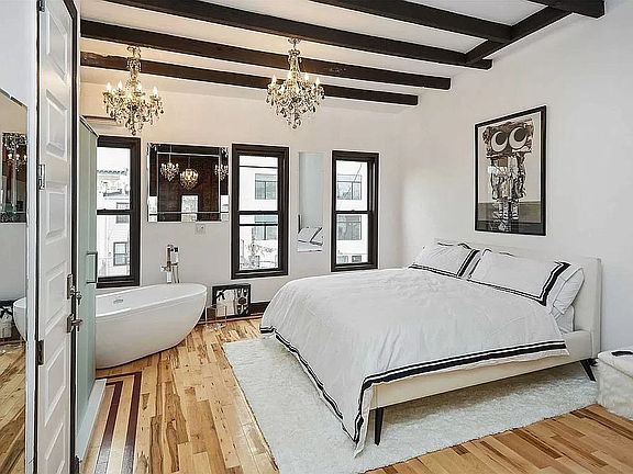 Spectacular Renovated 2 Family Penthouse and Duplex Townhouse In The Heart of Bushwick! This property was customized to generate massive rent roll! Generating upwards of 17k a month! The 2 Top Floors Have Been Designed Into A Masterpiece Duplex Apartment Offering 5 Large Bedrooms and 6 full Baths with full basement containing full bath, separate entrance and kitchenette. The Top Floor Hosts A Stunning Loft With An Entertainment Room W/ Fireplace, Overlooking The Manhattan Skyline, An Exquisite European Gourmet Kitchen W/ Seating Center Island, , Chandeliers, Top Of The Line S/S Appliances And So Much More!!! THIS IS A MUST SEE.
