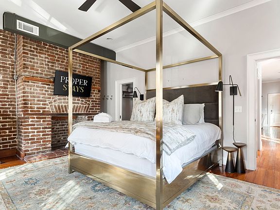This beautiful 1 bedroom, 1.5 bathroom apartment is perfectly situated in Downtown Charleston's popular French Quarter neighborhood. With exposed brick walls, heart pine floors, and two original fireplaces, this space is full of Charleston charm. This apartment was just furnished by Mitchell Hill Interiors.