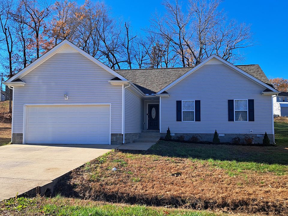 Charming 3 bedroom, 2 bath, 2 car garage home located in desirable Hunter's Pointe subdivision. Home is located on a dead-end street with trees bordering back of property, adding privacy. New paint throughout interior, new carpet, new stainless steel refrigerator and stove. Hardwood flooring in dining area and front entrance. Cathedral ceiling in living room. Master bedroom features tray ceiling, large walk in closet, and tiled master bath with garden tub. Granite tops on bathroom vanities. New roof. Concrete drive. Landscaped front of home. ADT security. Covered front porch and back deck. 8x12 Storage shed. This house is a must see!! Ready to move in!!