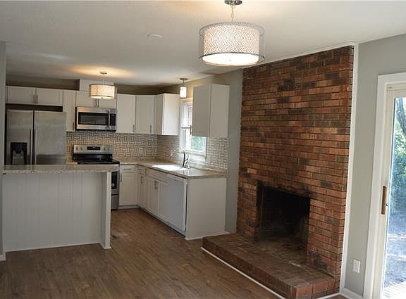 You are going to love this one! Stylishly updated just for you! From the wide plank flooring to the bathroom with a faux wood ceiling, this 3BR/1.5BA single level is refreshed for a new owner! Offering an open floor plan, you can enjoy guests as they dine in front of the fireplace or grill on the back patio! The kitchen boasts gorgeous crisp white cabinetry with an elegant tile back-splash, stainless steel appliances including a refrigerator, bar/island area and a pantry. The master bedroom is located in the back of the house. It offers a private 1/2 bath with vanity and tile back-splash. The guest bathroom is sure to please with updated fixtures & vanity. The guest bedrooms are spacious. If you need extra storage, a place for an extra car or room to grow, the unfinished basement is a true bonus! It is wide open with all sorts of possibilities. In addition, there is a 2 car carport and utility closet. Enjoy the level backyard and corner lot location! A must see!