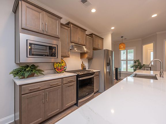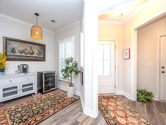 Desired Nexton Gated Active Adult community!! Motivated Seller!! Location to shops, restaurants and soon to be 2 new grocery stores is unparalled! Enjoy lunch at Poogan's porch and dinner at Hall's chophouse. Upon entering the neighborhood, you continue past the amenities area, turn onto Garden Gate Way, follow to your new home! The corner lot backing to a berm, allows unique distance from neighbors. Enter the foyer with expanse of the living areas flowing before you. To the left is the garage entrance, coat closet and custom built-in shelving being used as the library. As you continue into the home, the beautiful hardwood flooring flows throughout the living area into the sunroom. The kitchen island is huge, allowing for family and guests to join the cook in the conversation.Gas range, hooded vent, soft close drawers, are just a few of the added functions of this immaculate home. Dining area is conveniently located between the kitchen and family room, with transom windows for extra light and character, still allowing for privacy. Beyond the family room is the sunroom full of windows; this room commands time to just sit and relax! OR you can continue to the screened porch for some fresh air to relax or entertain. Owners suite is located off the family room. This spacious room has tray ceiling, on-suite bath with tiled walk-in shower, dual sinks, and best of all-Custom shelving and racks in the closet! Laundry has its own room, also with custom cabinets. Secondary bedroom and bath are at the front, separate from the owners suite. Crown molding adorns the main living areas, including the sunroom, and both bedrooms. Plantation shutters have been added to the home for beauty and practicality. The owner had added numerous upgrades through the builder and more post build. The detailed list of upgrades is available upon request. Call today for your private showing.