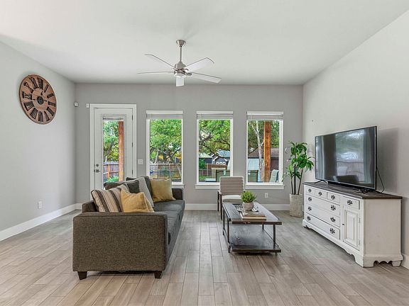 New price with an addition $5,000.00 to use how you want! This phenomenal single-story residence is ideally located in the highly desirable lakeside community near Canyon Lake, offering a perfect blend of natural beauty, comfort, and modern design. From the moment you enter, you are greeted by soaring ceilings and a thoughtfully designed floor plan that creates an open yet functional living environment. The home features three generously sized bedrooms along with a dedicated office, providing flexibility for remote work, hobbies, or guest accommodations. Designed with durability and ease of maintenance in mind, the home is finished with elegant porcelain wood-plank tile throughout, delivering both style and practicality. An abundance of natural light pours in through well-placed windows, illuminating the living spaces and enhancing the warm, inviting atmosphere. The spacious primary suite serves as a private retreat, seamlessly flowing into the luxurious primary bath. This spa-like space includes dual vanities, a stunning walk-in shower, and an impressive walk-in closet thoughtfully designed for both size and functionality. Situated on a spacious lot, the home extends its living space outdoors with a covered rear patio—ideal for weekend cookouts, entertaining guests, or simply relaxing and enjoying the serene surroundings. Whether hosting gatherings or enjoying quiet evenings, this home offers comfort, versatility, and a lifestyle inspired by lakeside living.