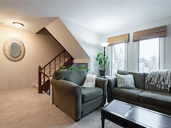 Rarely On Market! Tastefully Updated with NEW Carpet Throughout! This Open Layout 2 Bedroom, 1.5 Bath Townhouse has a Surprisingly Spacious Floorplan! Large Family Room Opens to Clean Tiled Kitchen with Stainless Appliances, Separate Dining Space has Sliders to Deck which Backs Up to Private Wooded Area, Half Bath and Pantry Complete the Main Level, Upstairs 2 Generous Bedrooms and Full Bath with Tub/Shower has access directly from Master and Hall, Master also has Slider to Charming Balcony, New Front Storm Door, Newer Hot Water Heater, Central Air, Lower Level Unfinished but Usable for Recreation and Storage, Lower Level Laundry, One Car Attached Garage, Wonderful Location Close to all You Need Including Shopping, Highways, Hospital, Schools, Parks/Trails and More! Quiet Area and Incredible Value! Hurry!