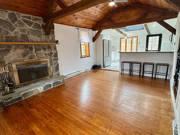 Welcome to this beautifully renovated single-story gem nestled in the charming hamlet of Tillson! Just minutes from the heart of Main Street Rosendale, the scenic Rondout Creek, and the peaceful Rail Trail, this home offers the perfect blend of comfort and convenience. Step inside to find a lovely mix of hardwood and tile floors, with a cozy living room featuring vaulted ceilings and a warm wood-burning fireplace. The bright, eat-in kitchen has been completely updated with gleaming granite countertops and sleek stainless steel appliances. Down the hall, you'll find two comfortable bedrooms and a full bath, while the spacious primary suite is a true retreat. It boasts double closets and a brand-new ensuite bathroom with classic subway tile. Tucked away on a quiet, dead-end street, the backyard offers plenty of space to unwind, stretching deep into the peaceful woods. Pets are welcome, and tenants are responsible for utilities. Come see all the charm and comfort this home has to offer! The renter pays all utilities, and the lease term is 1 year.
