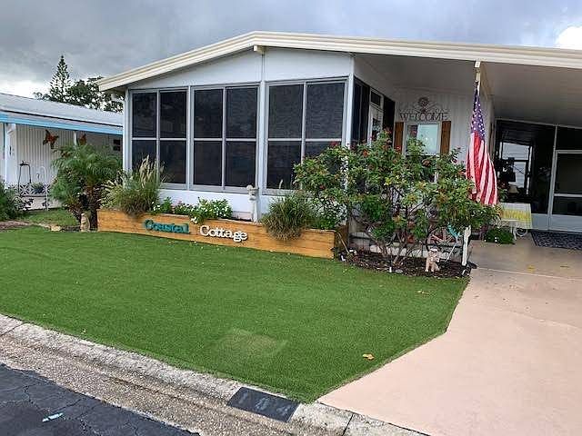 REDUCED $54,500!! Lovely home located in the community of Plantation Village. This 2 bedroom/2 bath home has a new AC and windows 2021. The flooring has been upgraded throughout the home. The refrigerator and stove are 1 year old. Large cozy living room that opens up to the front enclosed lanai. The guest bedroom and bathroom are spacious. The guest bathroom has a tub/shower combo. Large master bedroom with an ensuite bathroom. The bathroom has a step-in shower. The home has a side driveway, carport, screened patio and a storage shed. Washer and dryer are located in the storage shed. No pets are allowed. Plantation Village is a Co-op 55+ Community. The lot rent is $570.00 per month and includes water, sewer, garbage, cable and WIFI. Activities include 2 pickleball courts, 2 bocce ball courts, horseshoe pit, heated pool, shuffleboard courts, library, exercise machines, pool table, and a picnic area with a grill. All listing information given to us is considered appropriate and reliable but always recommend a home inspection by independent companies who have a background and thorough understanding of manufactured homes. We cannot guarantee the accuracy of information given to us or the condition of the home. Lot rents are determined by the community office not our company.