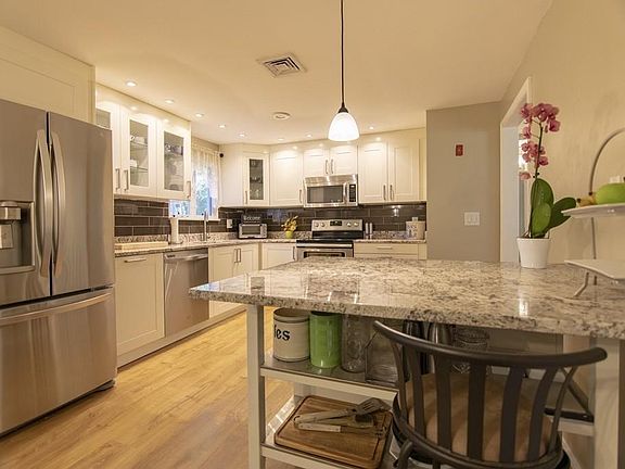 Wonderful opportunity to own a great home for entertaining your guests. The kitchen was updated approximately 2 years ago, white soft close cabinets & drawers with granite countertops. Peninsula separates the dining and kitchen area, plenty of room for your guests. The kitchen is equipped with all stainless steel appliances and a large pantry with pull out drawers. The kitchen flows into the dining room and 3 season sunroom. Down the hall there are 3 bedrooms along with a full bath with access from the hall or master bedroom. Head downstairs to the bonus room with a fireplace and pellet stove, great for those cold New England nights. Also on this level is the laundry and half bath along with a large cedar lined closet/storage area and additional storage in the back. Furnace/central air was also updated approximately 2 years ago. This home is move in ready, come check it out!