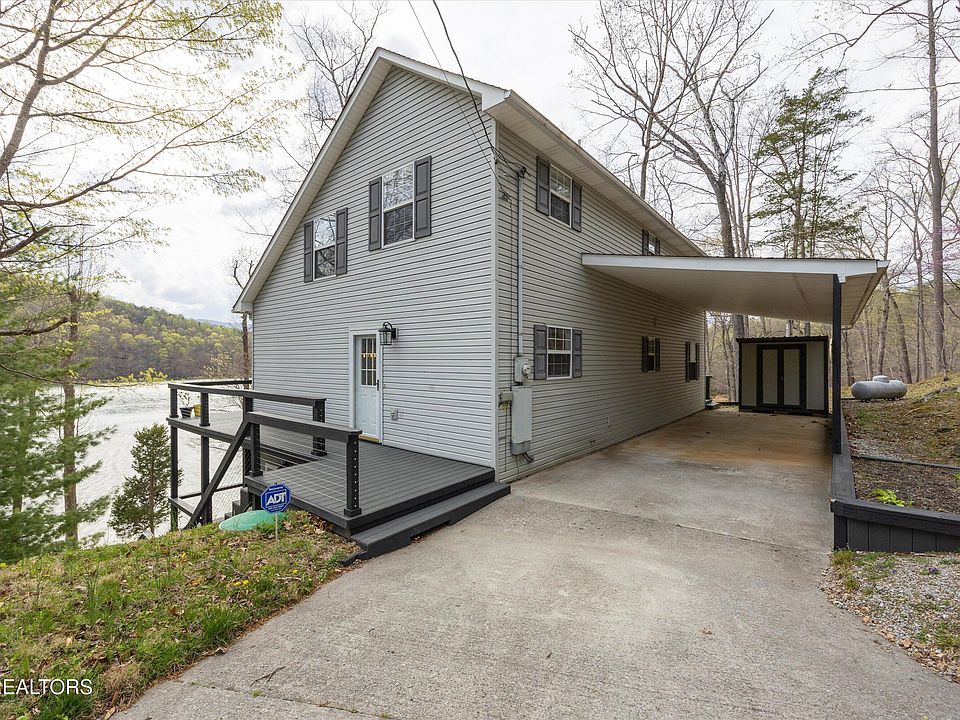 Lakefront Living at Its Best - Cove Creek on Hiwassee Drive! Experience breathtaking sunsets from your private dock or spacious porch at this stunning lakefront home in Cove Creek. Nestled on over half an acre, with 174 feet of lake frontage, this property offers ample parking, abundant sleeping areas, and an open-concept layout designed for seamless entertainment. The new Trex deck with wire railing maximizes the incredible lake views, allowing you to fully immerse yourself in the beauty of Norris Lake. The current owners have multiple parking options, including roadside, driveway, and even a trailer parking area in the front yard. Inside, floor-to-ceiling windows flood the main living area with natural light, providing panoramic water views from nearly every angle. Enjoy this home year-round, whether you're playing on the lake in the summer or getting cozy by the gas log fireplace in the cooler months. The walkout basement provides convenient access to all your lake gear and leads to gentle steps down to the water. The home is being sold turnkey, including a private dock with a boat slip and lift large enough for a wake boat. The large lower deck offers even more space for outdoor entertainment and relaxation, making it the perfect spot for gatherings with family and friends. Located near the back of a calm cove, this home provides the ideal setting for water play, swimming, and paddleboarding without heavy boat traffic. For added convenience, the subdivision features its own boat ramp and a large parking lot. Plus, the main channel is visible from the home and is just across the lake from Mountain Lake Marina, with Twin Cove and Norris Dam just a short boat ride away. Don't miss this rare opportunity to own a lakefront retreat with unmatched views, convenience, and access to Norris Lake! Schedule your private showing today!