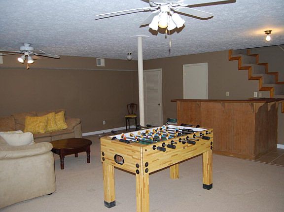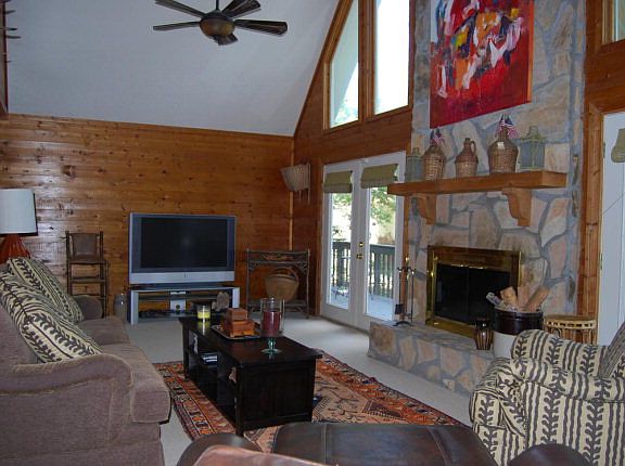 This A-frame style home is a great for a primary or secondary residence. Home has 3 bedrooms with 2 full baths and 2 half baths. The living room has a rustic feel with the wood walls and stone fireplace. There is a master bedroom on the main floor with a private bath. The kitchen comes with all appliances and has a eating area that leads to the deck. There is also a half bath and utility room on the main level. Upstairs are 2 bedrooms, a full bath and a small loft sitting area. The basement area is a large recreation room with a half bath and leads out to a covered patio. Landscaped stack stoned walls with steps leads you to the lake amenities that include: boatshelter with lift, dock, wooden seawall. Pool with patios for entertaining .