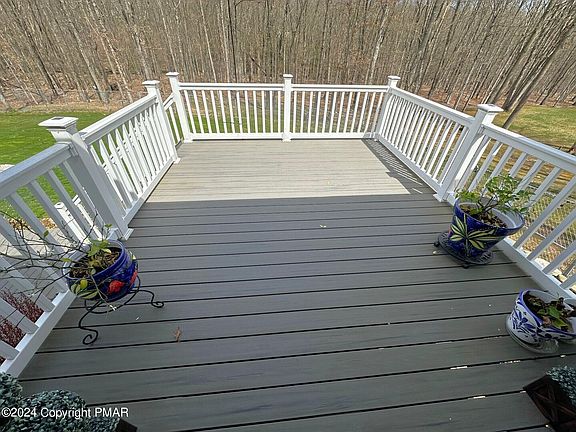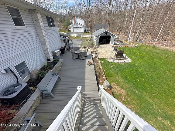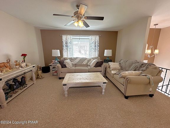 184 Jennifer Lane in Effort Pennsylvania is perfectly positioned in a low dues community in the Pleasant Valley School District. This Bi-Level construction offers separate levels of living. The Upper level hosts the living room, dining area with access to the rear amenities, large (main) kitchen with center island, main bath and 3 bedrooms. The lower level, also has walk in access, offers the family room with (2nd) kitchen(ette), full bath, bedroom, former dog grooming room, storage areas, and 1 car garage. You can easily convert this back to a 2 car garage by removing a few screws and the non-retaining walls. The list of highlights include, but aren't limited to, the attic storage over the garage, concrete entrance walkway, multiple level landscaping, 20X13 utility shed, paver patio, fire pit area, sitting area, vegetable garden, multiple entertainment decking areas, and stream off the rear of the property, the stream does not enter the parcel. Fencing is not included in the sale, but seller may sell it if you are interested. All of this is on a full acre with central heat/air and stone fireplace with a wood burning insert! This house is ready for you to call it HOME!