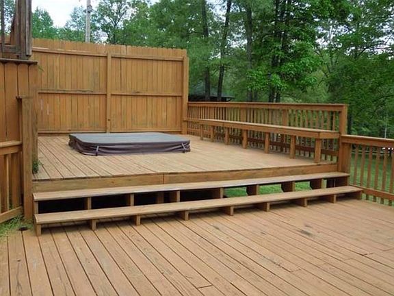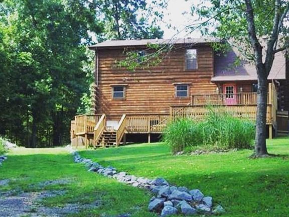 : Cul-de-sac location, 2.5 story log home w/full basement & 2-bay garage.Nice family room w/wet bar-lower level. 3-level deck w/hot tub.Master suite w/sitting area.Sitting on 5.96 acres, w/barn & fenced area, peaceful setting and close to Fort Campbell.