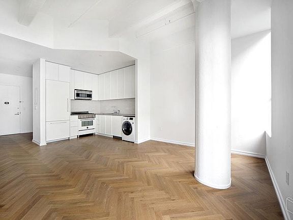 Luxe LOFT Living This is the real deal...an authentic Williamsburg loft. Be the first to live in this completely renovated spacious one bedroom home with a soaring 12' ceiling. Residence C-506 faces south, has brand new herringbone hardwood floors throughout, an open chef's kitchen with Caesar-stone concrete counter-tops, Japanese Kyoto back splash and a Washer/Dryer combo. The open gourmet kitchen off of the over-sized living room is an entertainer's dream. The generously sized bedroom easily fits a king sized bed and features a walk-in closet. The beautifully appointed spa-like bathroom has a spacious walk-in shower.Built in 1915 as a Grocery Trade, then later converted into a Bourbon distillery, Austin Nichols House has been expertly preserved and converted into a beacon of contemporary loft living. Situated in prime Williamsburg, Austin Nichols House is one of only a few landmark buildings nestled along the Brooklyn Waterfront offering Manhattan Skyline views, tranquil outdoor space and the North Williamsburg Ferry Landing located a couple of blocks away. With over 30,000 square feet of amenity space, including waterfront gym, children's playroom, landscaped courtyard and roof deck, relaxing lounge with catering kitchen, co-working spaces, movie theater, music rehearsal room, zen garden with fire-pit, and building garage. There's no other resident lifestyle like it.